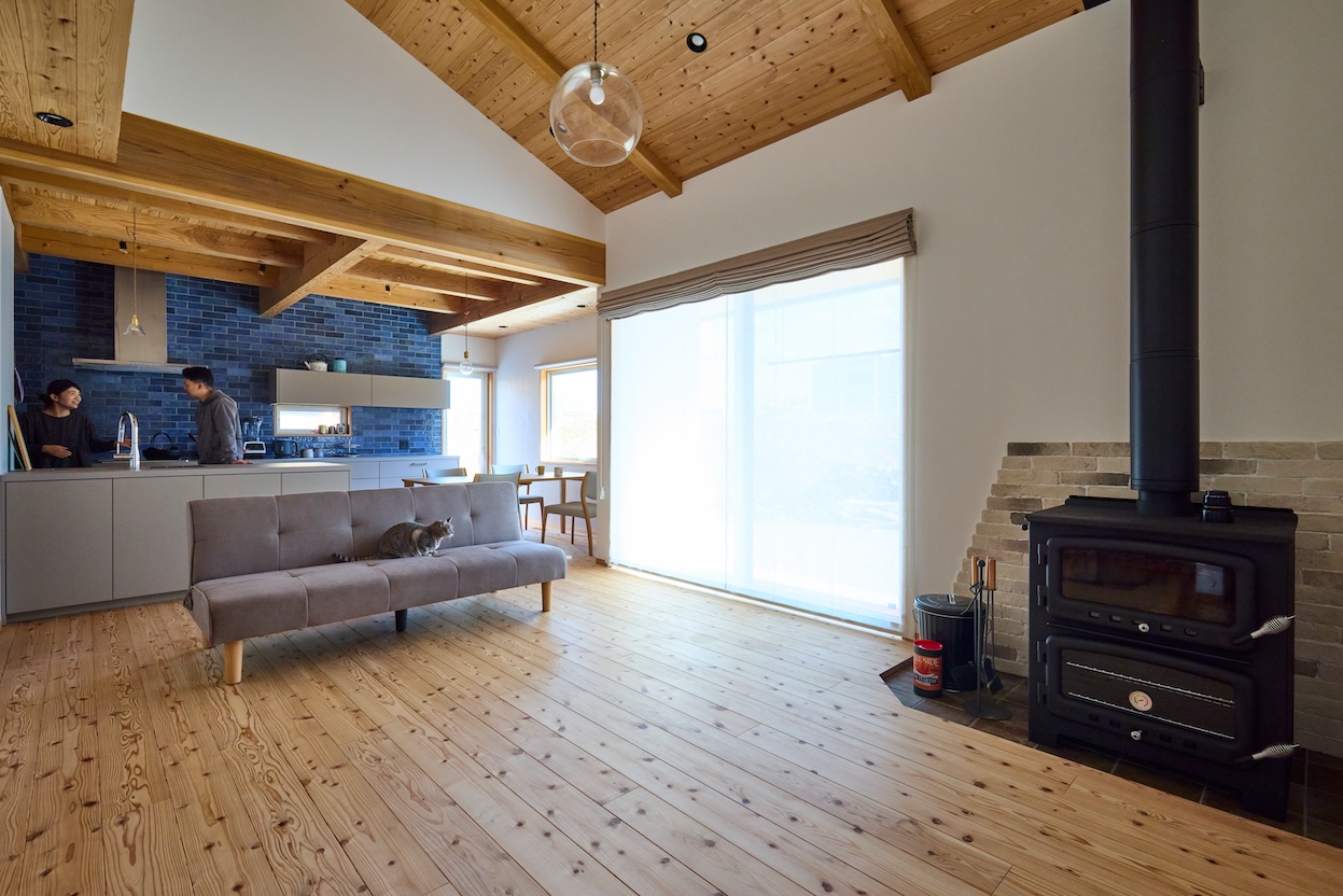 流行や表面的なデザインにとらわれず、日々に寄り添う暮らしを、棟生工務店は丁寧にかたちにしていきました。「朝起きても、床が冷たいと感じることがないんです。エアコンもリビングの一台だけで家じゅうが暖まって、一度暖まるとその心地よさが続く。薪ストーブも入れたんですが、なかなか使う機会がなくて」と、Tさんは笑います。
